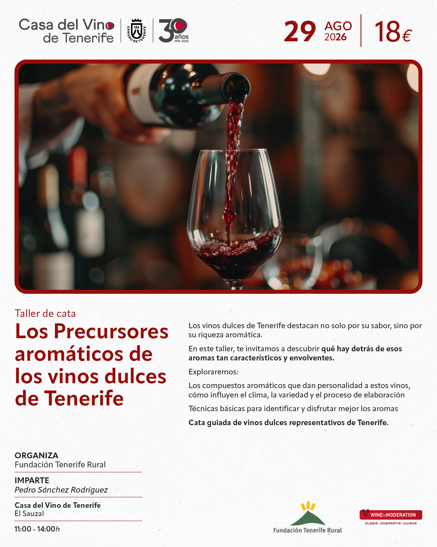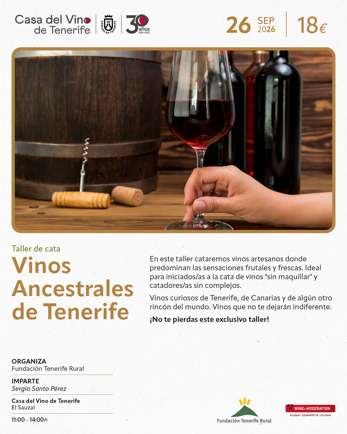 Catas de vinos divertidos, refrescantes para disfrutar en verano, talleres sobre variedades canarias antiguas o para aprender a distinguir los vinos atlánticos de los mediterráneos…